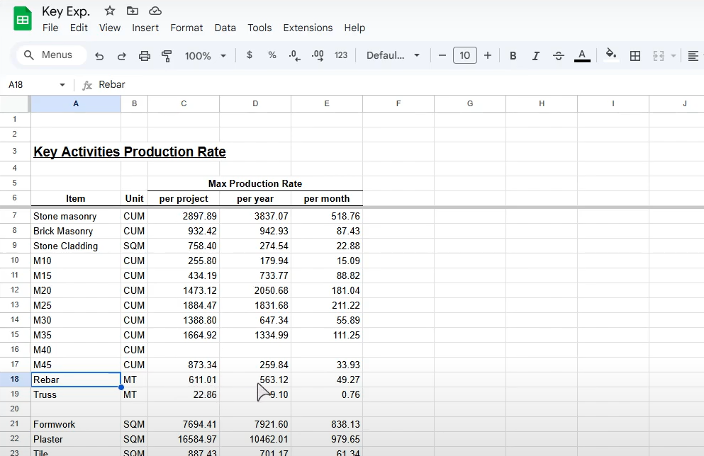 Maximum production rates of activities in different projects combined.